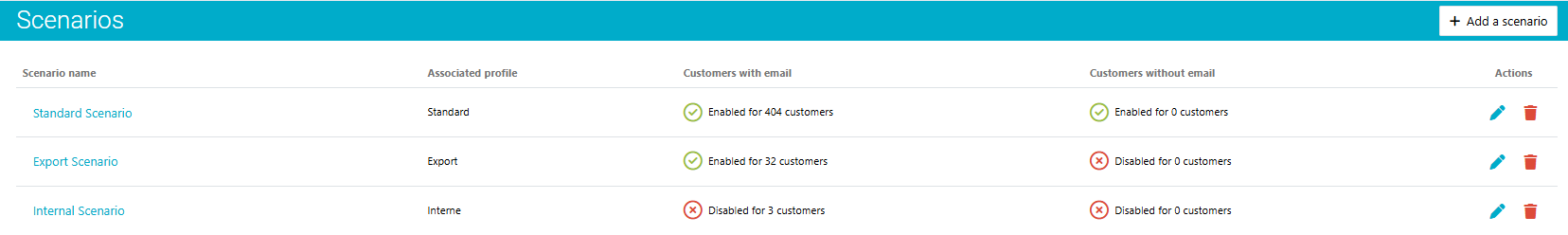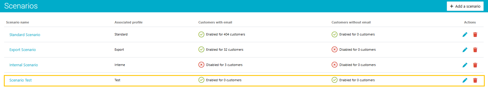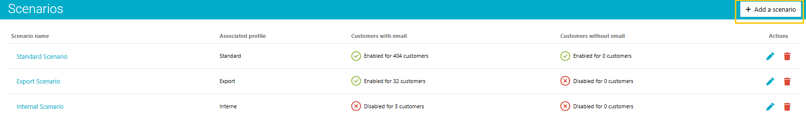Go to the Scenarios page (Settings > Scenarios) and click on the "Add Scenario" button:
