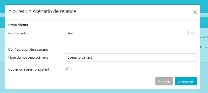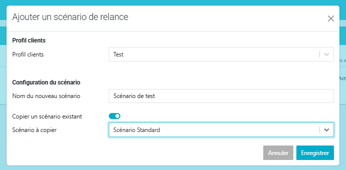 Nous vous recommandons de créer autant de scénarios que de profils client existants, afin de prendre en compte tous les clients dans la relance.