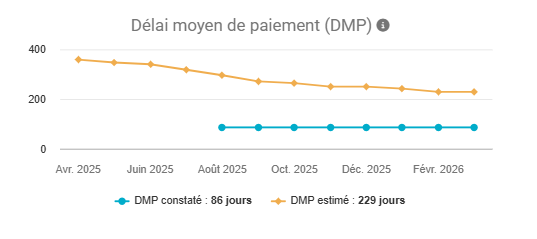 - DMP estimé (en orange) : inclut également les factures non payées pour refléter plus fidèlement la situation actuelle.