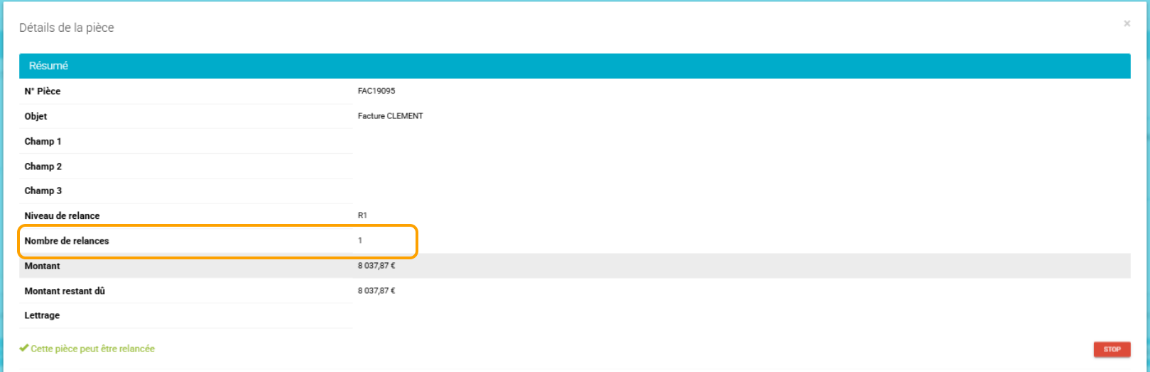 Cependant, vous pouvez connaitre le nombre de relances de l'écriture dans la page de détails de l'écriture, accessible depuis la situation de compte.