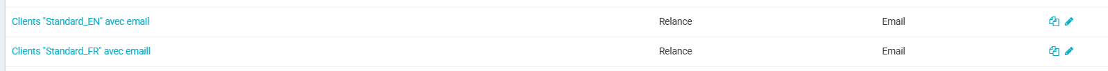 - In het voorgaandevoorbeeld zal er dus slechts één template zijn voor de klanten “Standaard”, ingesteld met twee talen (2 tabbladen): Frans en Engels.