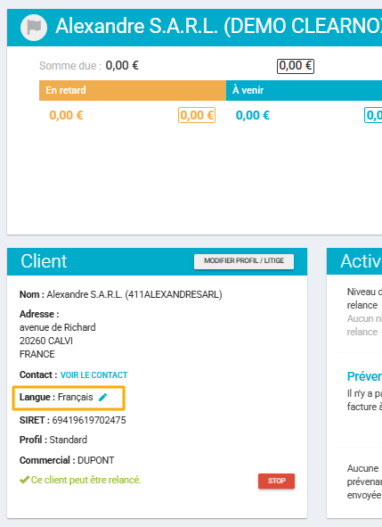 Om ervoor te zorgen dat meertalige herinneringen correct werken, is het essentieel dat elke klant een taal heeft ingesteld in zijn klantfiche.