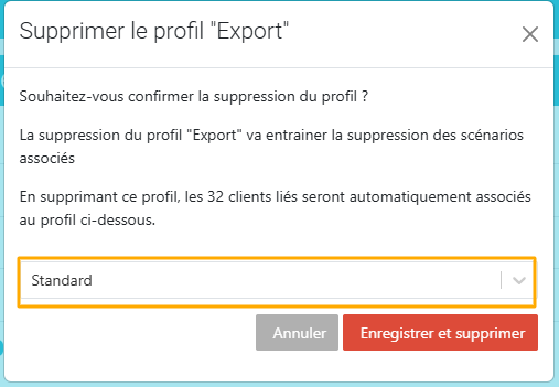- Er zal een bericht verschijnen waarin u wordt gevraagd om de gekoppelde klanten over te zetten naar een ander profiel.
